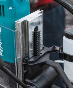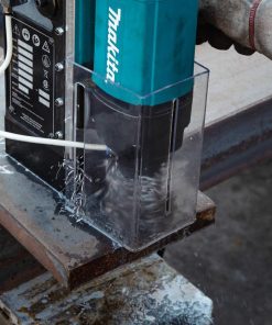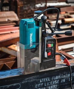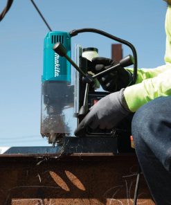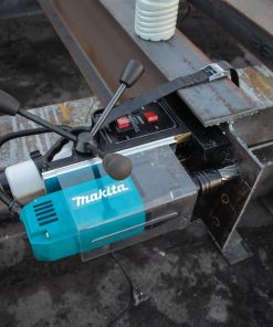 The Makita 1?3/8 Inch magnetic drill is powered by a powerful 10 Amp motor that delivers up to 850 RPM for enhanced cutting speed. It has capacity to cut holes in steel up to 1-3/8 Inch Dia and 2 Inch thick. The lightweight and portable design of this drill makes it ideal for working in constrained or elevated spaces. The removable guard isolates the cutting mechanism while rotating. Spindle coolant system with removable reservoir ensures enhanced cutting performance. The magnetic base of thus drill produces powerful clamping force for added accuracy and stability while drilling. Dovetail slide mechanism delivered smooth and consistent drilling performance. Simplified three button control panel ensured ease of operation. Integrated carrying handle allows added convenience to the user. It comes with 500 mL coolant bottle, polyester safety strap, cutting guard, hex wrenches and tool case.