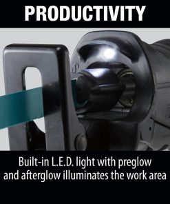 Recipro Saw delivers 0-2,300 (Low) & 0-3,000 (High) strokes per minute and a 1-1/4″ stroke length for faster cutting; weighs only 8.3 lbs. with battery