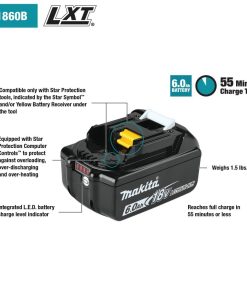18V LXT? Lithium-Ion 6.0Ah batteries (BL1860B) reach a full charge in 55 minutes or less