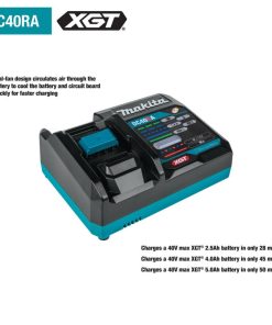 The XGT? Rapid Charger with dual-fan design circulates air through the battery to cool the battery and circuit board quickly for faster charging