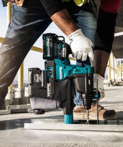 The Makita 40 Volt Max XGT? cordless rotary hammer kit includes brushless 1-1/8 Inch AVT? rotary hammer (GRH01Z), dust extractor attachment with HEPA filter cleaning mechanism (DX12), cloth towel (443122-7), 4.0 Amp-hour battery (BL4040), rapid optimum charger (DC40RA), side handle assembly (126882-3), grease (194683-7) and a tool bag. This cordless hammer tool is a great concrete solution designed for heavy-load applications. It delivers the power, speed and run-time for corded demands without the cord. The XGT? technology delivers up to 135 of 3/8 Inch holes per charge when using one 40 Volt max 4.0 Amp-hour battery. Tool features constant speed control that automatically applies additional power under load for optimum performance. It also features Active Feedback-Sensing Technology (AFT?) to electronically turn off the motor, if rotation of bit is suddenly forced to stop. The Anti-Vibration Technology (AVT?) is an internal counterbalance that uses air pressure to move counterweight pistons in the opposite direction of the drive piston to actively reduce vibration. In addition, the vibration-absorbing back handle and side handle further reduce vibration. Tool with Extreme Protection Technology (XPT?) system is engineered for improved dust, water resistance and added durability in harsh job site conditions.
