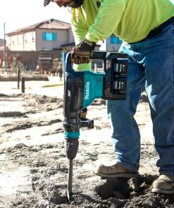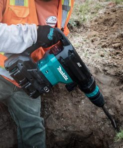 The Makita brushless demolition hammer kit contains a demolition hammer, 12 Inch bull point SDS-Max, side handle, two 4 Amp-Hours batteries, hammer bit grease, tool case, rapid optimum charger and a wiping cloth. This hammer works well with 12 Inch SDS-Max bits and is ideal for heavy load applications. Anti-vibration technology minimizes the vibration on the padded handle thus making it easier to use. Internal counterbalancing technology moves the counterweight positions in the opposite direction of the drive piston by utilizing the air pressure. Auto-Wireless technology makes use of Bluetooth connectivity for effortless wireless communication between the equipped tool and the dust extractor. Dust extractor automatically starts when the tool is running and stops immediately when the tool is stopped. This in turns enhances the productivity and minimizes the continuous noise at the jobsite. Uniform speed control gives more power to the motor to maintain constant speed under heavy load and the variable speed control allows the user to change the operating speeds to suit the application. Electric brake prevents sudden initiation, the integrated LED light brightens up the working surface and soft-start mechanism prevents the start-up reaction. Soft no-load technology minimizes the speed of the motor while idling. Multi-finger power trigger prevents fatigue when using for longer periods of time. Side handle can be rotated for up to 360 degree for operational flexibility. Multiple angle settings facilitates the bit to be set at different positions. Extreme protection mechanism provides good resistance to dust and water in harsh weather conditions. The batteries can be charged fully in just 45 minutes and the LED indicator displays the battery level. The rapid optimum charger consists of a built-in chip that controls the voltage, current as well as the temperature of the battery. Integrated fan of the charger cools down the battery in case of overheating.