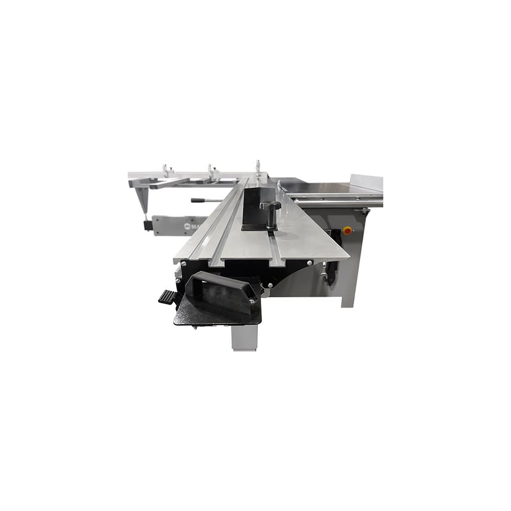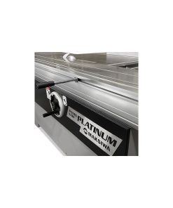 The BMP.3200.IR platinum is the most powerful sliding panel saw from Maksiwa, equipped with a 7.5HP main motor and 3/4HP scoring motor (3 Phase). The 126 In. sliding table is constructed of anodized aluminum and runs on precision linear guide rails that gives you an ultra-smooth movement allowing you to move the table effortlessly. Designed with a European style 51 In. rip fence, it has a digital readout with a micro adjustment for fine-tuning; simply lock it in place and adjust fence incrementally. The rip fence consists of a heavy-duty casting riding on a micro-polished solid steel bar. Our heavy-duty anodized aluminum crosscut fence features two solid flip-stops, telescoping function (max 140 In.), 45 Deg miter and is ergonomically designed to make it easier to read the tape. The control panel is conveniently located on an eye-level position with easy access to the main operation buttons. It comes standard with two overhead guards 90 Deg and 45 Deg featuring a quick-change and swing-away function, easily switch from one to the other in a matter of seconds and move the guard out of the way easily if necessary. It also includes a push handle, hold-down clamp and wedge clamp.