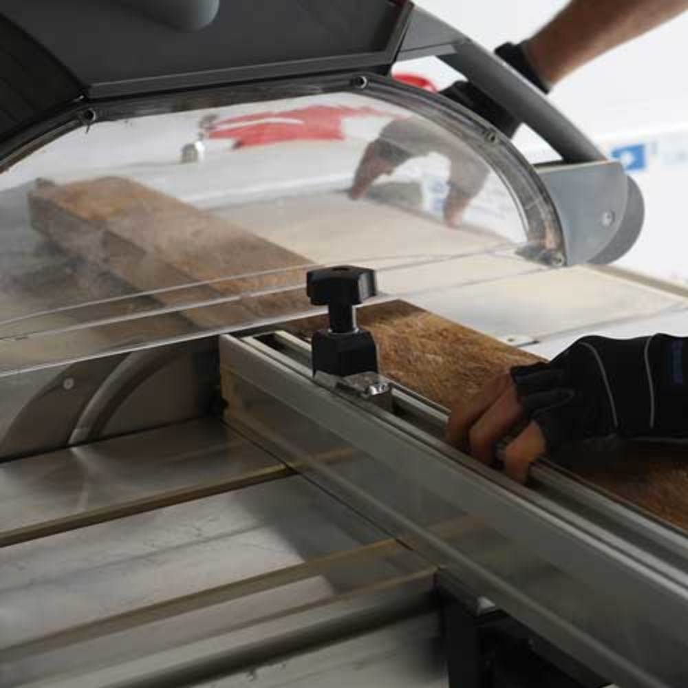 The BMS.3200.IR is a sliding panel saw tailor made to provide high quality precise cuts in diverse angles with a max cut depth of 4 In. (100 mm) at 90 Deg. It includes a 5HP motor, cutting guides, miter guide, blade guard. The noise level of this equipment is 76.5 dB (the machine turned on only) up to 110 dB (with the machine on and the exhaust system on. The noise will vary in accordance with the location the machine is in and the materials used).