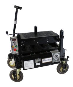 Solid rubber tires and swivel casters for easy jobsite maneuverability and will never go flat
