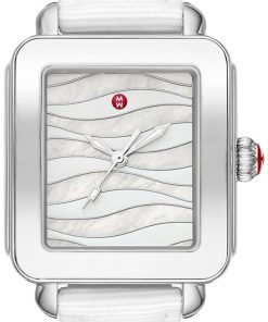 Michele Deco Sport White MOP Wave Pattern Dial & Ocean Material Strap Watch, 34mm
