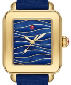 Michele Sport Midnight MOP w/ Waves Dial & Grosgrain-Textured Strap Watch, 34mm