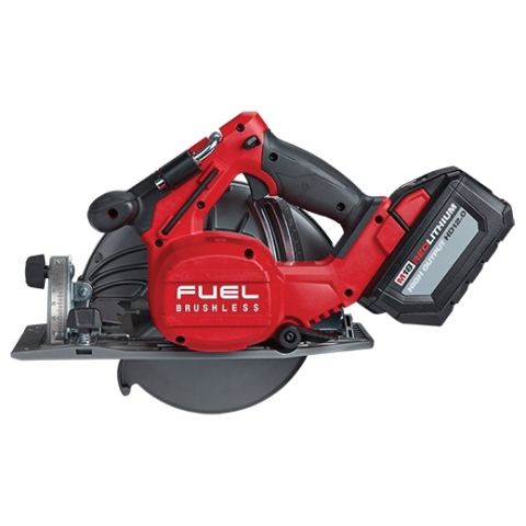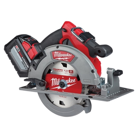 Designed for the carpenter, remodeler and general contractor, the M18 FUEL™ 7-1/4 in circular saw from Milwaukee generates 15 A corded power, cuts faster than a 15 A corded saw and gives users up to 750 cuts per charge. The POWERSTATE™ Brushless Motor provides 5800 rpm and higher speeds under load for corded cutting performance. REDLINK PLUS™ intelligence ensures maximum performance and protection from overload, overheating and over discharge. The M18™ REDLITHIUM™ HIGH OUTPUT™ HD12.0 battery delivers unmatched run time in all applications. All magnesium guards and shoe delivers extreme durability for jobsite conditions. A built-in rafter hook offers quick and easy storage and an electric brake stops the blade quickly after cuts are complete for maximum productivity.