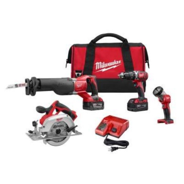 The 2694-24 M18 cordless 4-tool combination kit includes (1) 1/2 In. hammer drill/driver (Model No. 2602-20), (1) Sawzall reciprocating saw (Model No. 2620-20), (1) 6-1/2 In. circular saw (Model No. 2630-20), (1) work light (Model No. 49-24-0171), (2) XC High Capacity REDLITHIUM Battery (Model No. 48-11-1828), (1) M18 & M12 multi-voltage charger (Model No. 48-59-1812), (1) contractor bag. The M18 cordless system’s patented technologies and electronics, innovative motor design, and superior ergonomics provide the most efficient blend of power, weight, and performance in the industry. Powered by Lithium-Ion, the M18 cordless system delivers more torque, more power, and longer run-time than the competition.