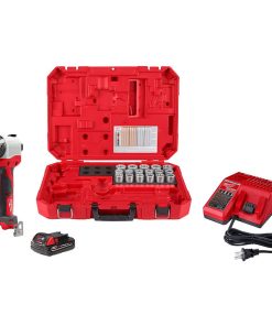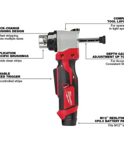 The MILWAUKEE? M18? Cable Stripper Kit with 17 Cu THHN / XHHW Bushings vastly improves the cable stripping experience. With no exposed blades, the cordless cable stripper provides safer stripping than with a knife. The cable stripper’s compact, right-angle design allows users to maneuver it more easily in tight spaces with less strain on the wrist. The bushing design and adjustable depth gauge deliver cleaner, more accurate, and consistent strips across all sizes. The cable jacket stripping tool is not only compatible with all Milwaukee bushings but is also compatible with competitive quick-change bushings. In addition to the battery-powered stripper, this kit contains 17 bushings for copper THHN and XHHW cables, one M18? Compact REDLITHIUM? battery, an M18? & M12? Multi-Voltage Charger, and a carrying case.