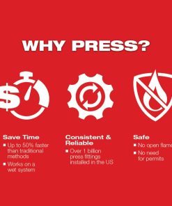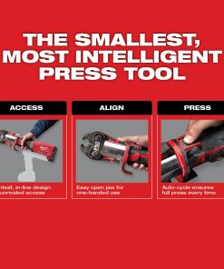 The MILWAUKEE? M18? FORCE LOGIC? Press Tool Kit w/ ONE-KEY? with 1/4″-7/8″ Streamline? ACR Jaws changes the game in refrigerant line installations, offering a flame-free, efficient alternative to traditional brazing. The ACR press jaws, compatible with Mueller Streamline? ACR Press fittings, unlock productivity for HVAC system installers, eliminating nitrogen purges, combustible gases, and expensive silver solder necessary for brazing. As the industry??s first press tool with remote tracking, management, and lockout, ONE-KEY? allows for logging and uploading data from every press via the desktop or mobile app, making it the smallest, most intelligent press tool on the market. The state-of-the-art press tool features an in-line design and brushless motor, enabling more run-time per charge and faster cycle times while significantly smaller and nearly 20% lighter than the leading competitor. The in-line design with a forward hand position unlocks the ability to press with one hand and will fit nearly anywhere professionals can fit their arms. Milwaukee REDLINK? electronics provide the highest level of press accuracy and reliability available in the industry. Auto-cycle ensures a full press every time, and the pre-press battery check prevents the tool from starting a press it can??t complete. With 1/2?? to 4?? capacity (depending on material) and compatibility with over 20 unique fitting systems, the press tool is an optimal solution for HVAC and mechanical contractors.