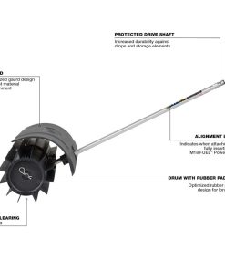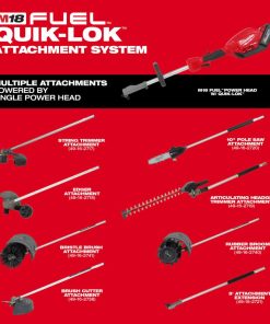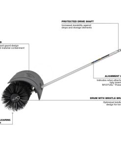 The MILWAUKEE? M18 FUEL? QUIK-LOK? Bristle Brush and Rubber Broom Attachment are powered by the MILWAUKEE? M18 FUEL? Power Head w/ QUIK-LOK? (sold separately) and is compatible with the M18 FUEL? QUIK-LOK? Attachment System. Bristle Brush attachment has optimized bristle design is great for removing debris like mulch and dirt from hard surfaces and allows for longer life while covering a 23″ clearing width. Milwaukee bristle brush’s optimized guard design offers the best material containment. Rubber Broom has optimized rubber paddle design is great for removing debris like mulch and gravel from grass and allows for longer life while covering a 23″ clearing width. Milwaukee rubber broom’s optimized guard design offers the best material containment. Milwaukee QUIK-LOK? Attachments feature protected drive shafts for increased durability against drops and storage elements. The bristle brush attachment also features optimized gearing to manage the cordless MILWAUKEE? M18 FUEL? Power Head RPM output specifically for this attachment.