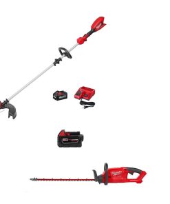 The MILWAUKEE? M18? Brushless String Trimmer delivers more clearing power and a larger cutting swath than battery-powered competitors. The brushless motor was built and optimized specifically for trimming applications and provides up to 6,200 RPM. The M18 FUEL? hedge trimmer has the power to cut 3/4 in. branches, cuts up to 30% faster, and provides up to 2 hours of run-time per charge. Delivers up to 2.5X more run-time, 20% more power and 2X more life than standard lithium-ion batteries. The M18? REDLITHIUM? XC 5.0 extended capacity battery pack features superior pack construction, electronics, and performance to deliver more work per charge and more work over the life of the pack than any battery on the market. Includes (1) M18? Brushless String Trimmer, (1) M18 FUEL? 24In Hedge Trimmer Bare Tool, (1) M18? REDLITHIUM? HIGH OUTPUT? XC6.0Ah Battery, (1) M18? REDLITHIUM? XC 5.0Ah Extended Capacity Battery Pack, and (1) M18? & M12? Charger.