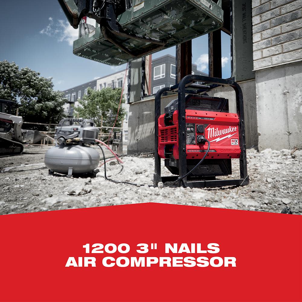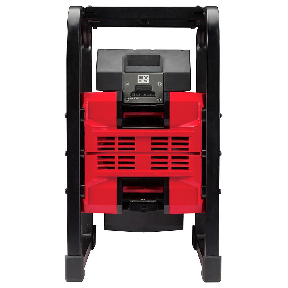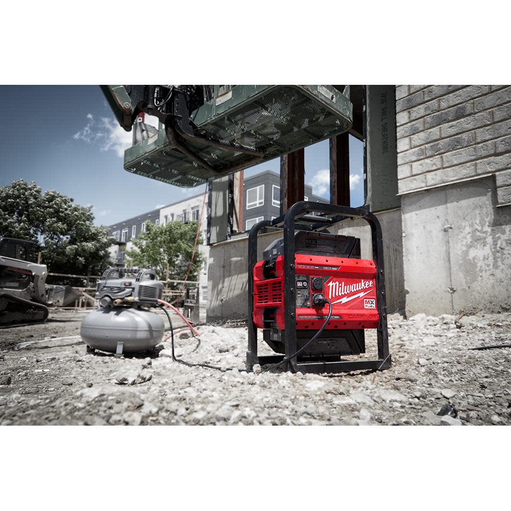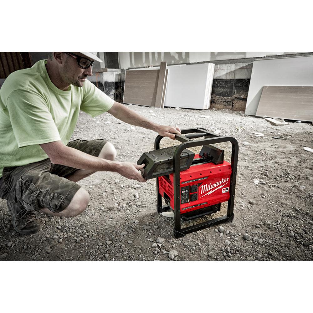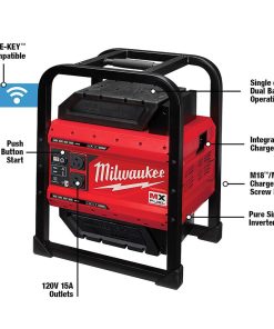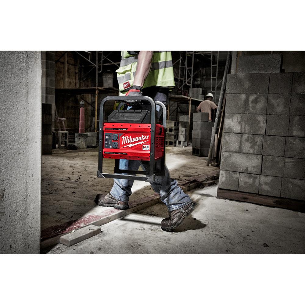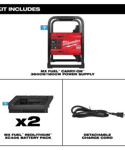 The MILWAUKEE? MX FUEL? CARRY-ON? 3600W/1800W Power Supply provides the best temporary power for the job. Power more on-demand with efficient, quiet, and portable power anywhere. The portable power supply provides 3600 peak watts, 1800 continuous watts of pure sine inverter energy, powering everything from high demand 15A tools to sensitive electronics. The compact size, no emissions, and quiet operation of the power supply unit allow it to be used safely in confined spaces indoors. The metal roll cage delivers durability for outdoor jobsite use. The battery-powered generator eliminates the cost of gasoline and doesn??t require engine repair or maintenance, reducing downtime to get jobs done faster. The cordless generator can be powered by a single battery for lightweight portability or two batteries for double the run-time. The MX FUEL? CARRY-ON? 3600W/1800W Power Supply can sequentially charge a CP203 battery in 45 minutes and a XC406 battery in 90 minutes. It is compatible with all Milwaukee MX FUEL? REDLITHIUM? batteries delivering the hardest working and most reliable power for equipment. REDLINK PLUS INTELLIGENCE? ensures maximum performance and protection from overload, overheating and over-discharge. The temporary power supply is ONE-KEY? Compatible. Track, manage and secure equipment from mobile devices or computers using the industry??s largest Bluetooth? community tracking network. If the power supply is ever lost or stolen, prevent tampering with remote lockout capability.