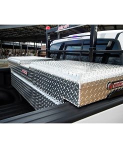 Grab your tools easily using either side of your truck when you have this Aluminum Full Size Cross Box from WEATHER GUARD?. The box fits full-size pickup trucks that have 6-1/2- or 8-foot beds. Safety is an important feature when you’re carrying expensive tools and supplies around. This truck cross box uses EXTREME PROTECTION? locks that retract and prevent thieves from accessing your belongings. They’re easy for you to open with a key, however, thanks to the rotary latch that provides a one-touch opening on either side. An ARMOR-TUF? clear-coat finish keeps the Weather Guard box dependable and looking like new. For added protection, it’s also completely sealed to prevent the weather from damaging it.