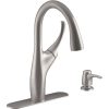 Featuring single-sensor touchless activation, MotionSense wave allows you to easily turn water on and off with the wave of a hand – no need to touch the faucet with dirty or wet hands. Lever handle makes it easy to adjust the water. Spot Resist stainless finish resists fingerprints and water spots for a cleaner looking kitchen. Power Clean spray technology provides 50% more spray power versus most of the pulldown and pullout faucets without the Power Clean technology. Aerated stream for every day cleaning, powerful rinse for heavy-duty cleaning, and pause function conveniently stops water flow from the spray head. Equipped with the Reflex system for smooth operation, easy movement and secure docking of the pulldown/pullout spray head. Faucet pulldown hose with 68 In. braided hose offers flexible water delivery and hose retracts with ease. Features Duralock quick connect system for easy installation. Flexible supply lines with 3/8 In. compression fittings connect directly to supply stop. Standard design mounts on the sink or countertop. Includes deckplate. Matching soap dispenser provides added convenience. Complies with Americans with Disabilities Act (ADA) specifications. Meets current legislation, including AB1953 (California) and S152 (Vermont). Limited lifetime warranty.