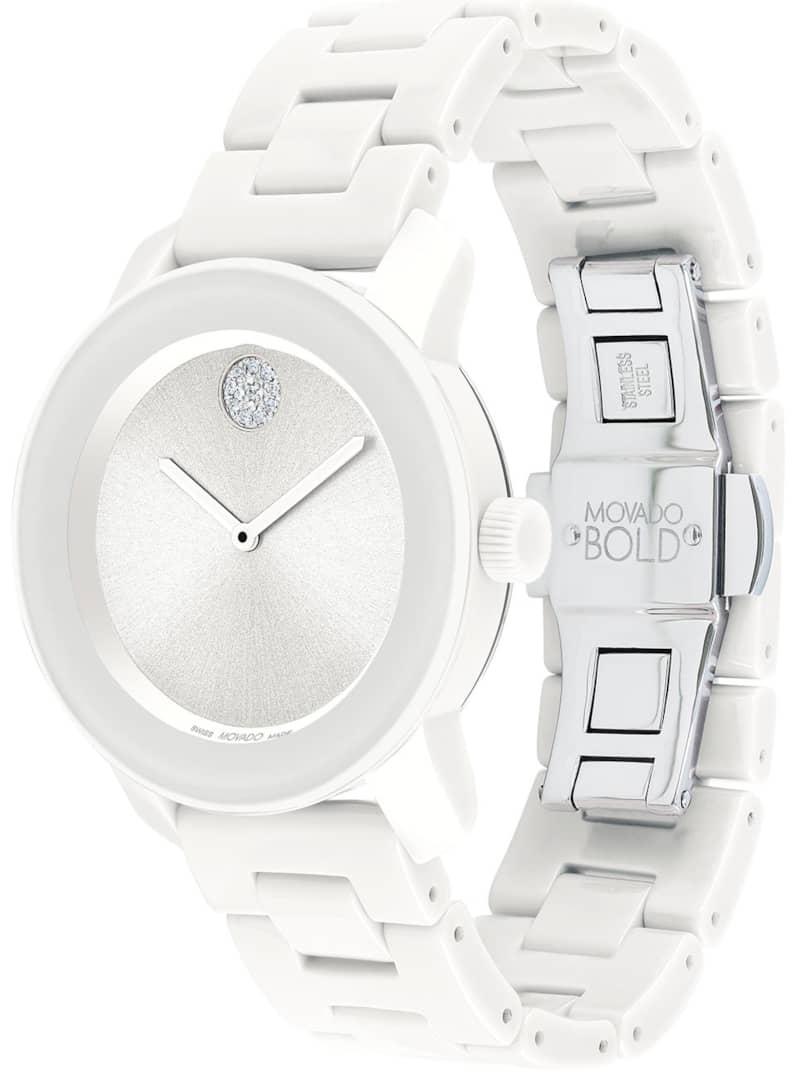 Movado BOLD Ceramic Silver/White Bracelet Watch, 36mm