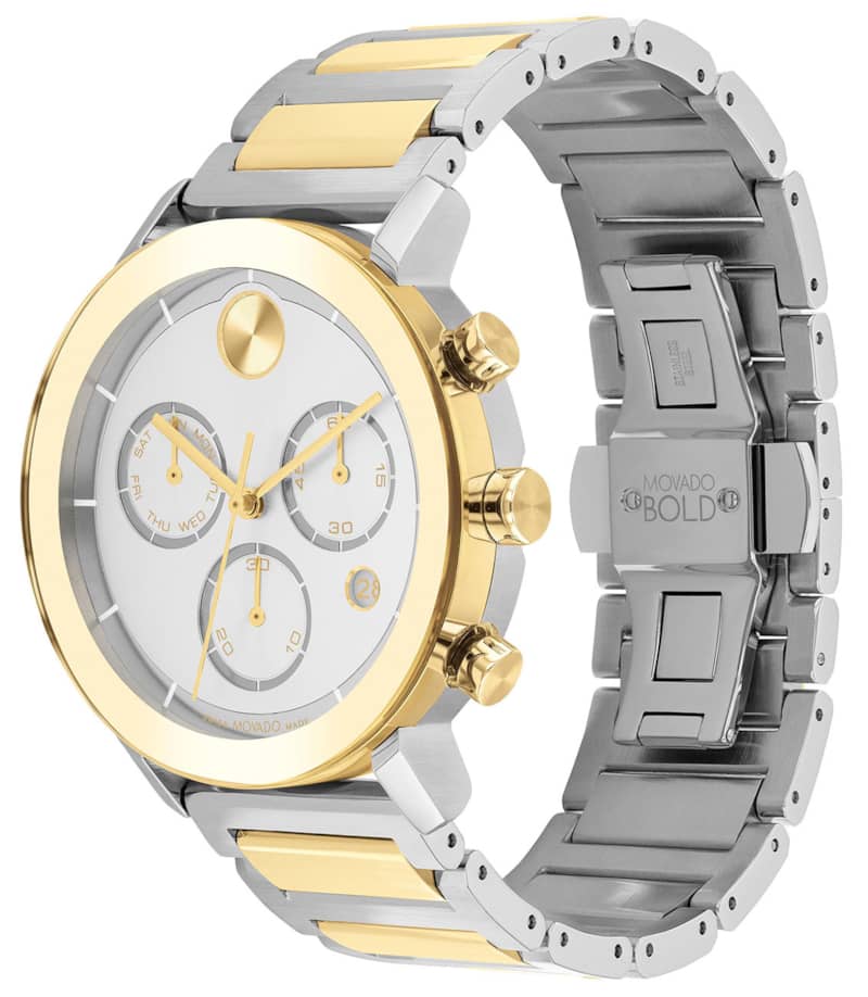 Movado BOLD Evolution Chronograph Silver-Tone Metallic Dial Two-Tone SS Link Bracelet Watch, 42mm