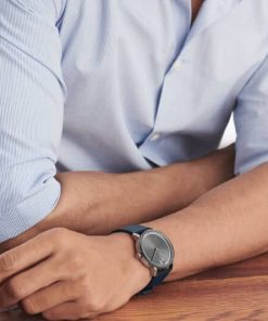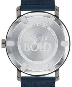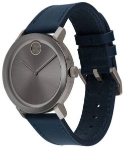 Movado BOLD Evolution Grey Sunray Navy Blue Leather Strap Watch, 40mm