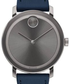 Movado BOLD Evolution Grey Sunray Navy Blue Leather Strap Watch, 40mm