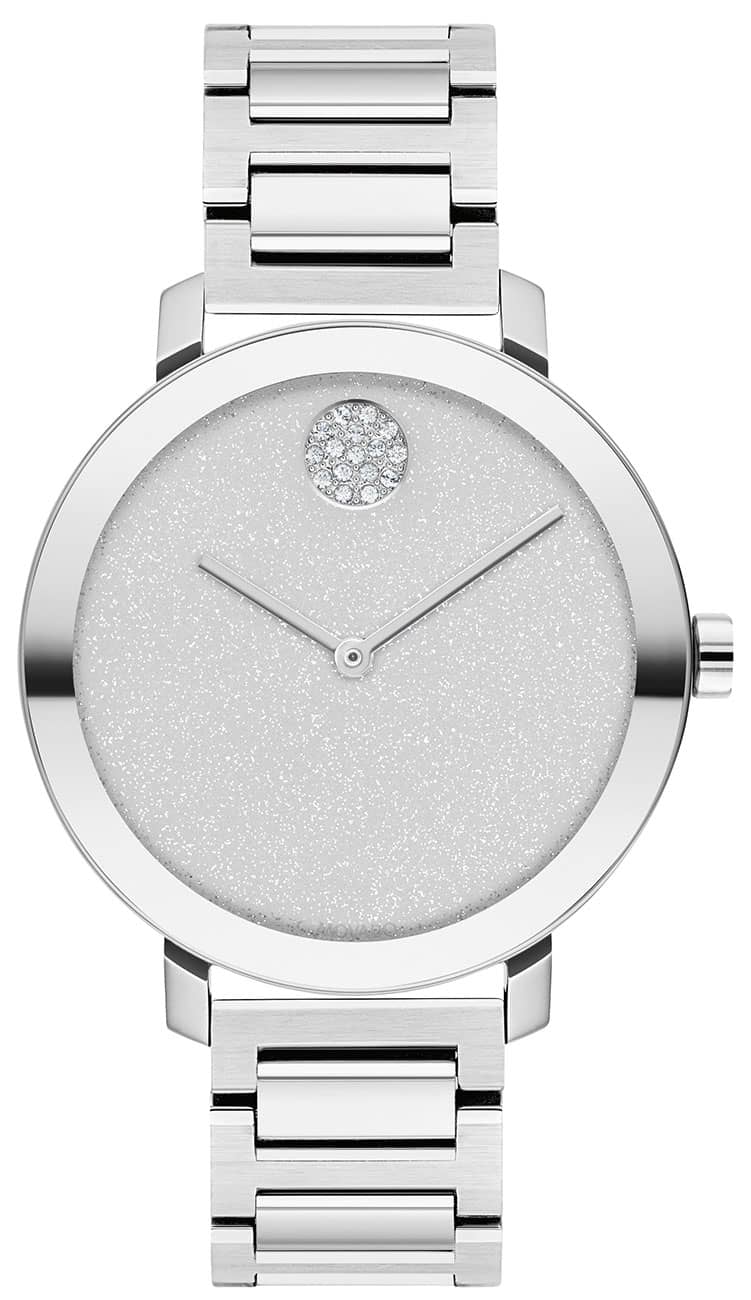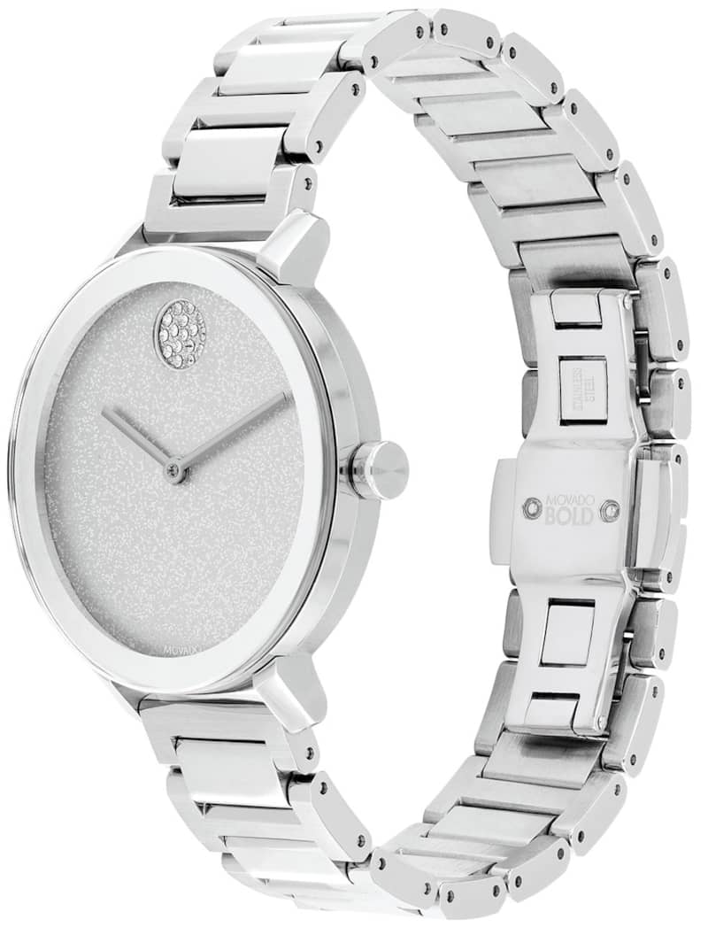 Movado BOLD Evolution Silver Glitter Dial & Link Bracelet Watch, 34mm