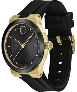 Movado BOLD Fusion Black w/ Gold-Tone Accents Dial & Silicone Strap Watch, 42.3mm