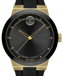 Movado BOLD Fusion Black w/ Gold-Tone Accents Dial & Silicone Strap Watch, 42.3mm