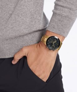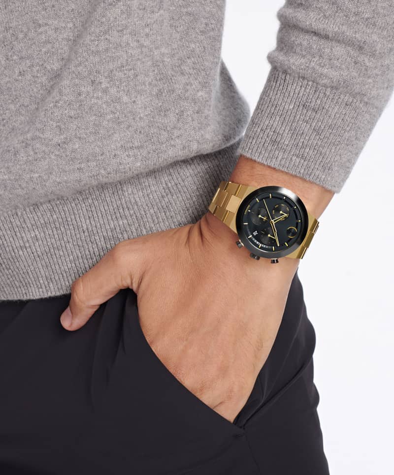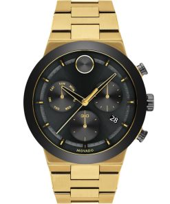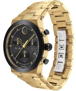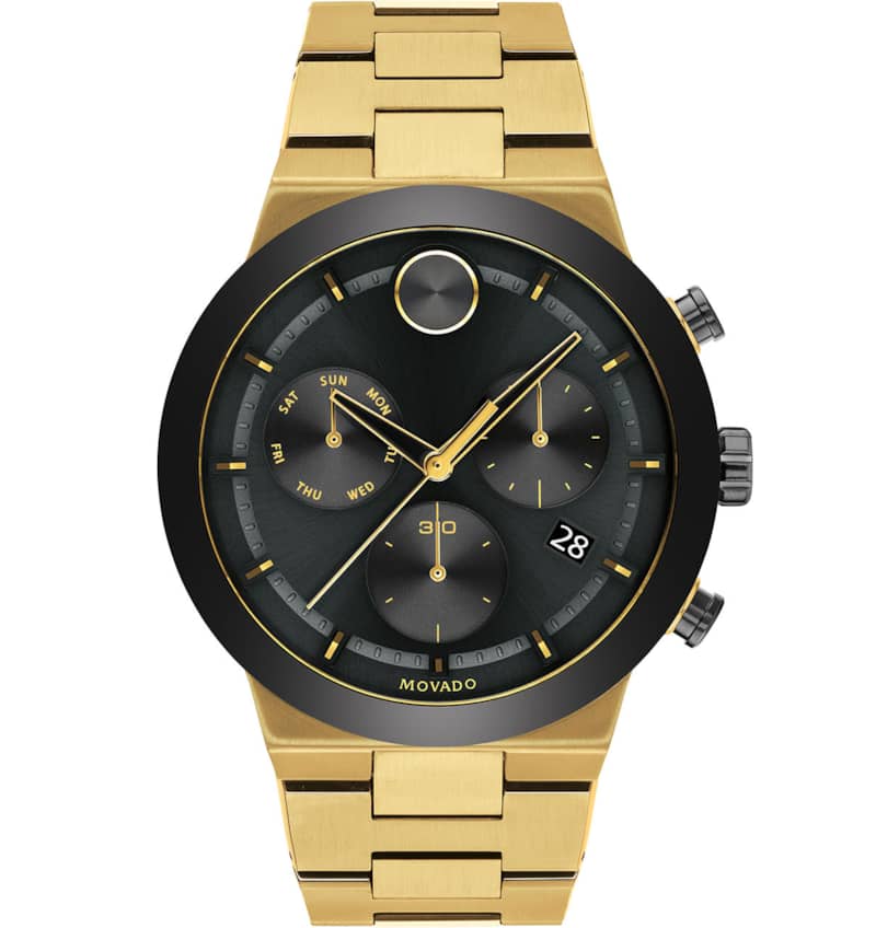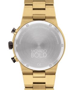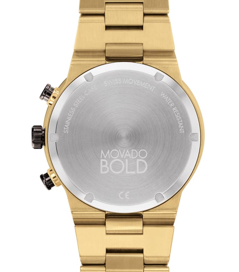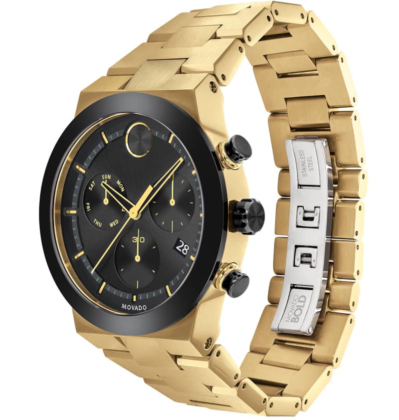 Movado BOLD Fusion Chronograph Black Dial Pale Gold-Tone Ion-Plated SS Link Watch, 44.5mm