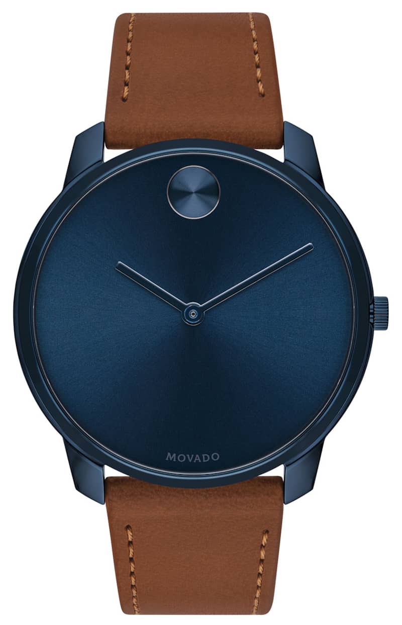 Movado BOLD Thin Blue Dial Nappa Brown Leather Strap Watch, 42mm