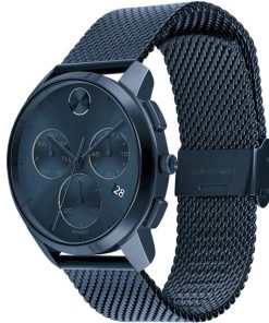 Movado BOLD Thin Chronograph Blue Dial & Ion-Plated SS Mesh Bracelet Watch, 42mm