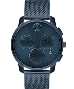 Movado BOLD Thin Chronograph Blue Dial & Ion-Plated SS Mesh Bracelet Watch, 42mm