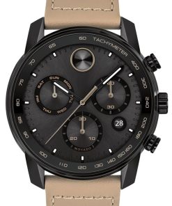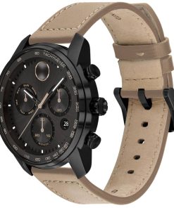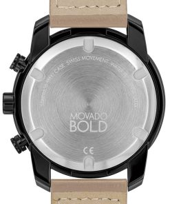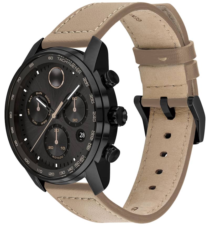 Movado BOLD Verso Chronograph Black Dial Taupe Leather Strap Watch, 44mm
