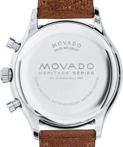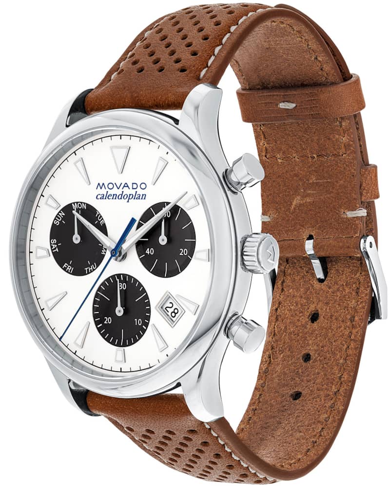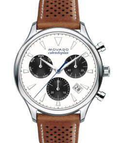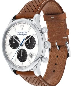 Movado Heritage Series Calendoplan White Dial Cognac Leather Strap Watch, 43mm