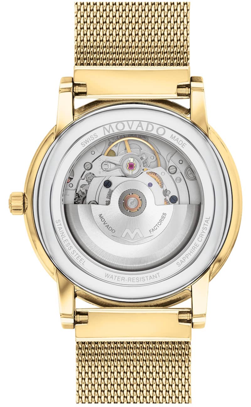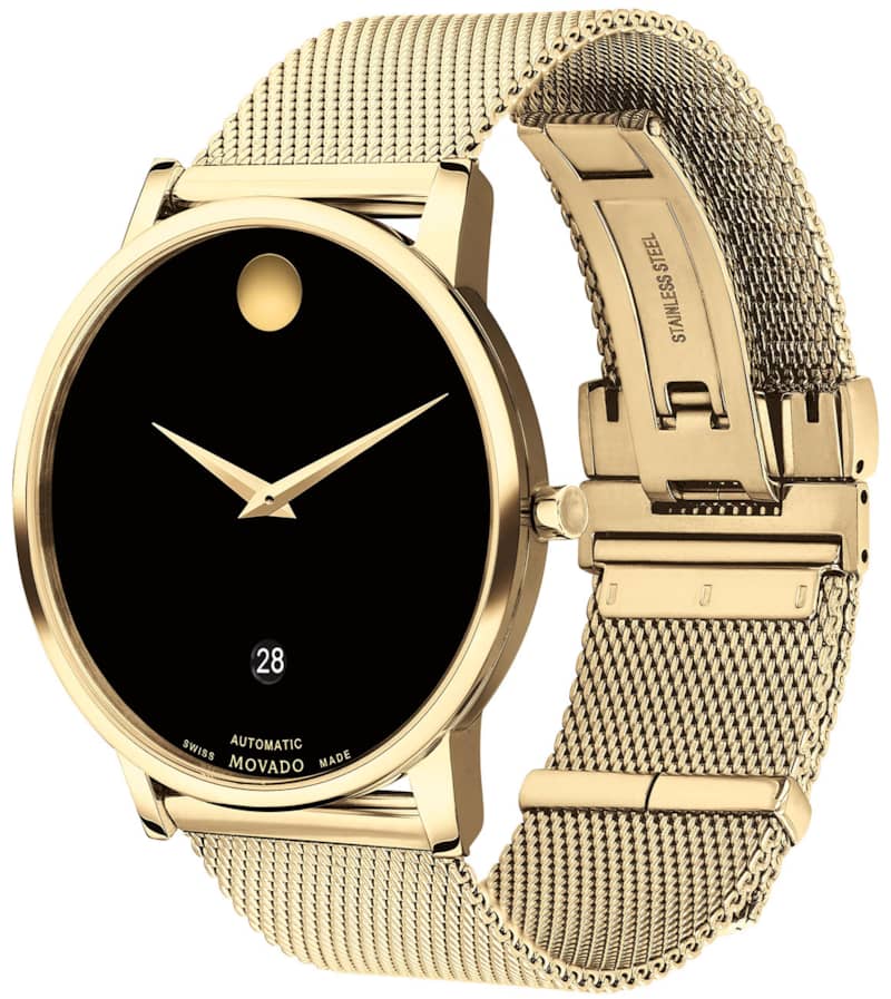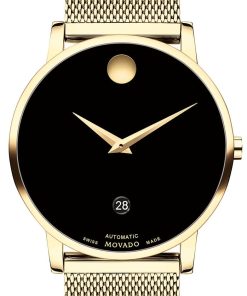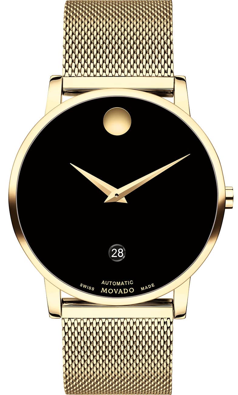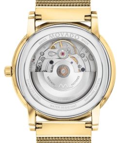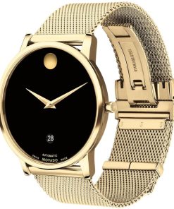 Movado Museum Classic Automatic Black Dial Yellow Gold PVD Mesh Bracelet Watch, 36mm