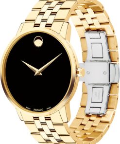 Movado Museum Classic Black Dial Yellow Gold PVD Stainless Steel Watch, 40mm