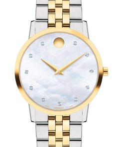 Movado Museum Classic White MOP Dial Two-Tone PVD Bracelet Watch, 33mm