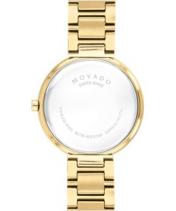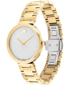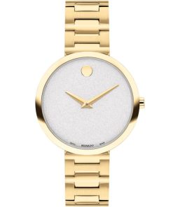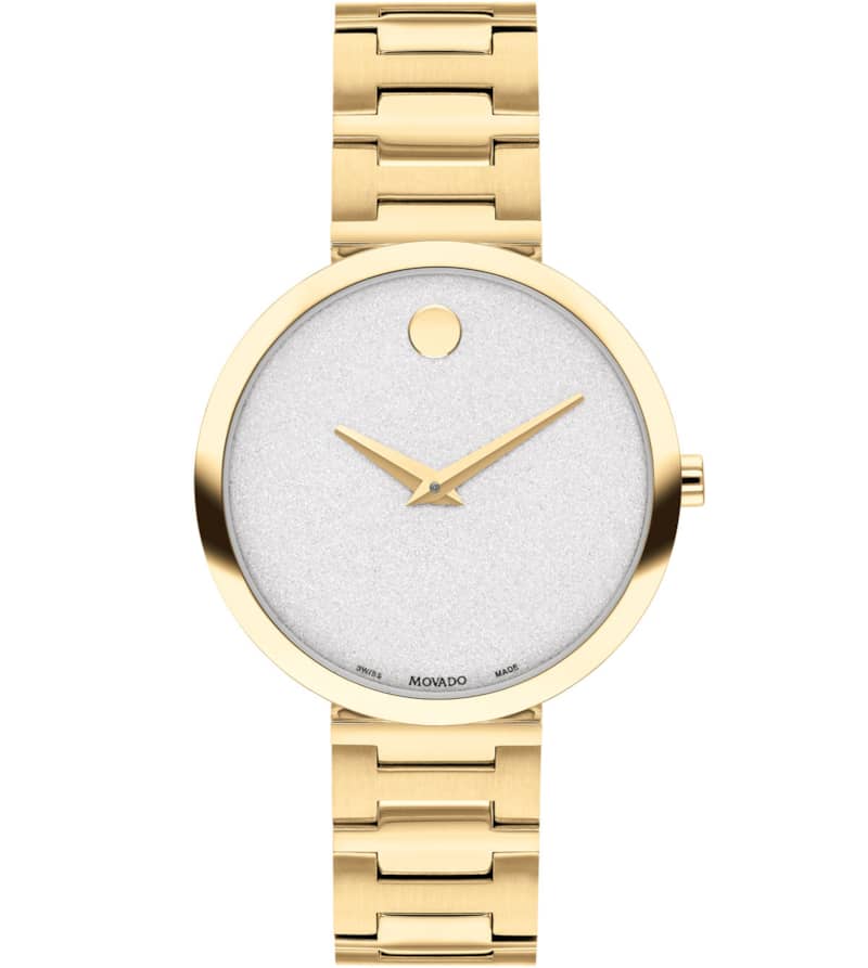 Movado Museum Classic White Sparkle Dial Yellow Gold-Tone PVD Link Bracelet Watch, 32mm