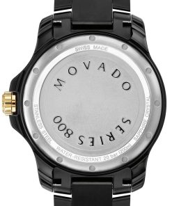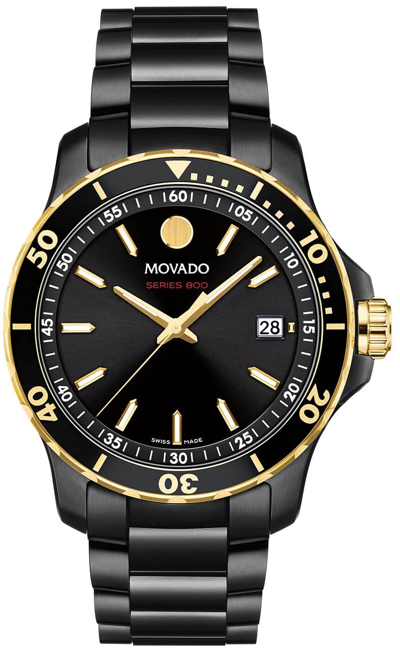 Movado Series 800 40mm Watch w/ Black Dial & PVD Stainless Steel Bracelet, Model 2600161Movado Series 800, 40mm black PVD-finished stainless steel case and bracelet with black dial, unidirectional bezel and date window detailing. Beyond The Dot: