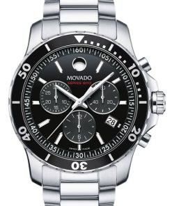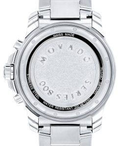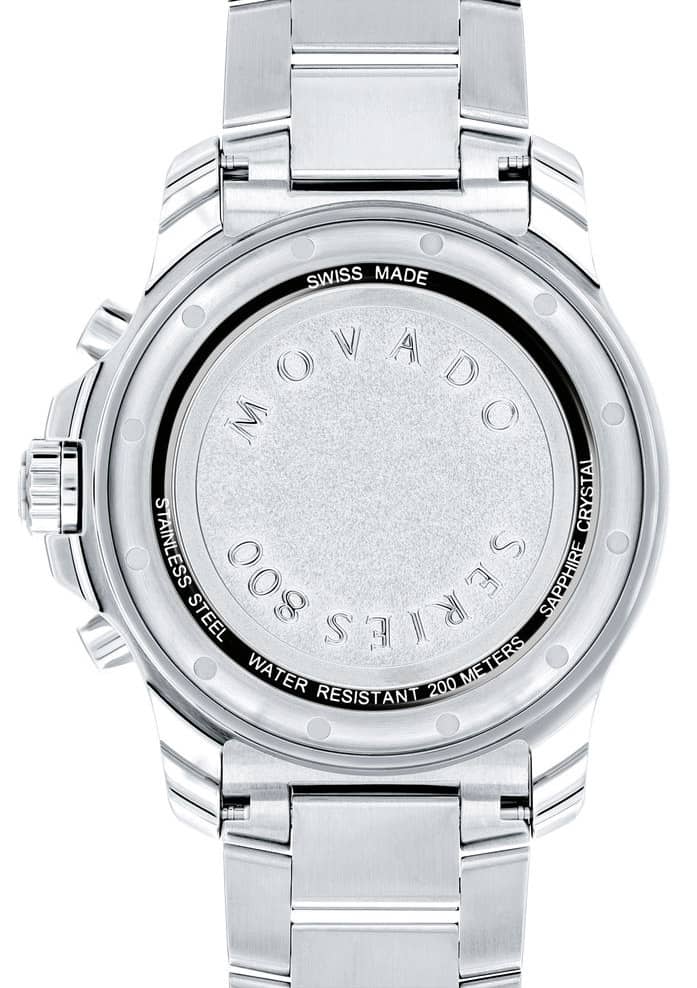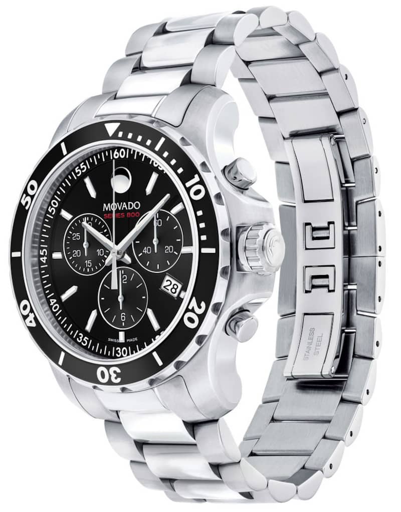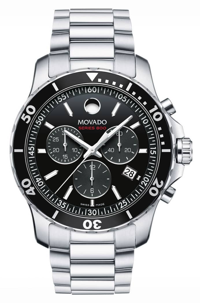 Movado Series 800 42mm Watch w/ Black Dial & Stainless Steel Link Bracelet, Model 2600142Movado Series 800, 42 mm Performance Steel case and bracelet with black chronograph dial. Beyond The Dot: