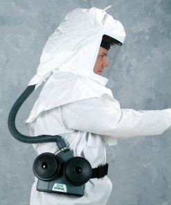 The low-profile OptimAirTL Powered Air-Purifying Respirator combines state-of-the-art design with superior “smart” features. The unit packages the motor blower, cartridges, and battery in a single hip-hugging design for lightweight comfort and fit. The low profile motor blower offers optimal airflow through a crushproof breathing tube, while the ergonomic battery pack allows for free movement within confined spaces. The unit automatically adjusts flow rates for altitude via an internal pressure sensor, while the cutting-edge design permits fast, accurate change-out of cartridges, hoods and batteries. The standard kit includes motor blower, smart charger, standard battery, hose, and decon belt.