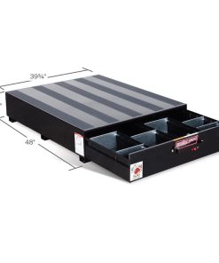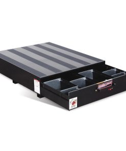 Heavy-duty storage keeps bed space open and supplies organized. The model 338-5 black steel pack rat standard drawer unit has 4 compartments with 24 dividers and has a load rating of 750 lbs. This unit can be mounted inside the rear of the vehicle to provide easy access to large tools and supplies while leaving floor space open.