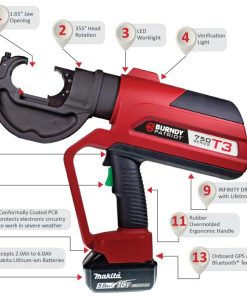 PATRIOT? T3 Technology 12-Ton Battery Crimper, C-Head, Uncovered, Two 3.0Ah 18V Li-Ion Batteries, 120V-AC Charger, Hard Case