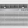 Thru-the-wall air conditioner. Features electronic controls, auto mode, full range air direction control, dry mode, 24 hour timer, energy saver mode, sleep mode, auto restart function, and slide-out filter access. Full function remote control with Follow Me portable thermostat for total room coverage. 3 cool/fan speeds. Interior trim kit included. Thru-the-wall air conditioner sleeve not included. Temperature output range of 62 deg (degrees) F (Fahrenheit) to 86 deg F. NEMA 5-15P plug. 9.8 amps/1020 watts. 24 In. W. x 14-1/2 In. H. x 20-1/4 In. D. 1-year over the counter warranty. White.