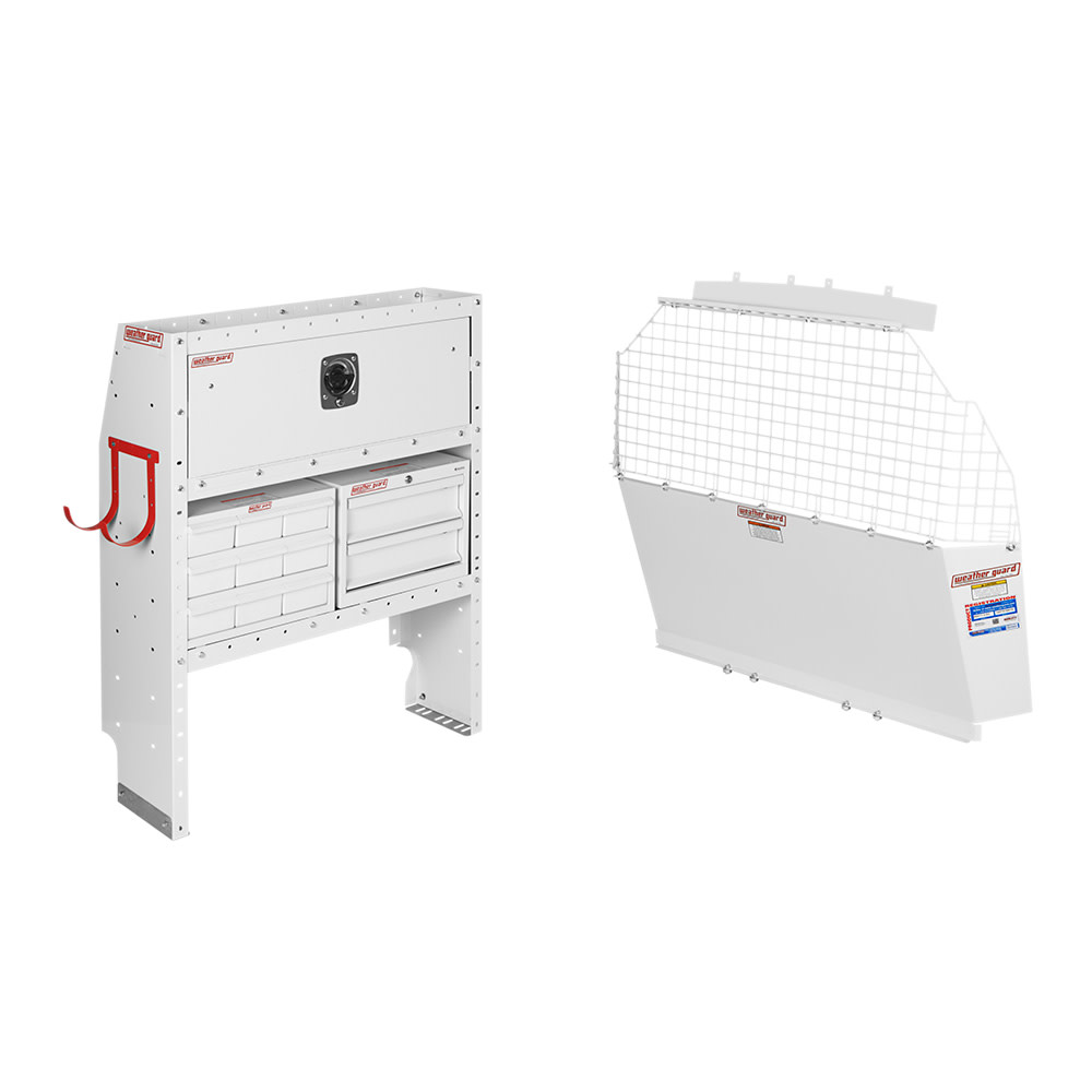 Designed for plumbers and cable/telecom installers, the WEATHER GUARD Model 600-8312L van package for Compact 2014 Ford Transit Connect long wheel base vans provides adjustable cargo van shelving sized to fit the commercial van interior, drawer cabinets, a shelf door, and accessories. It includes a sturdy van bulkhead partition for maximum protection against shifting loads. Additional van products are available to create a custom van storage solution.