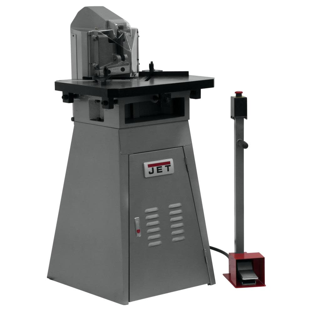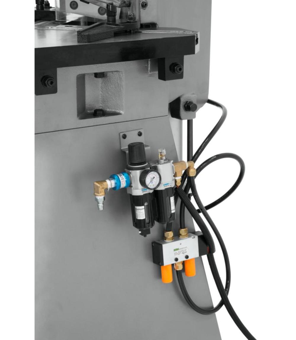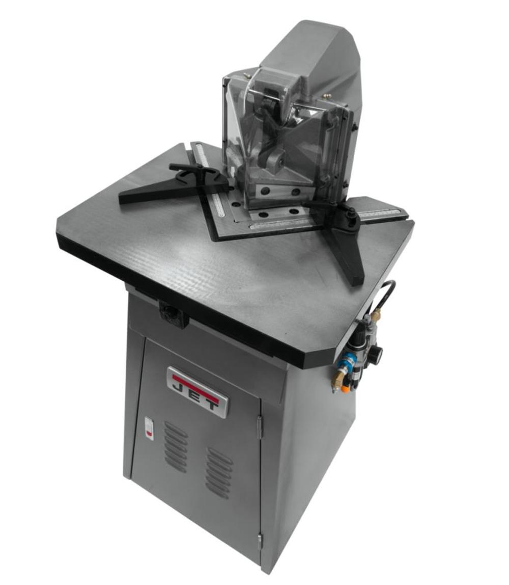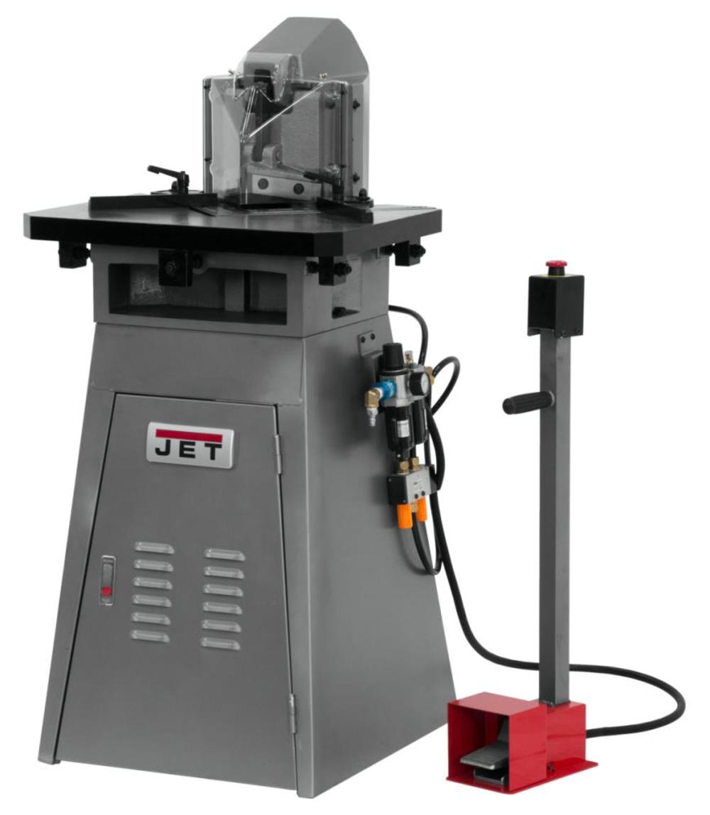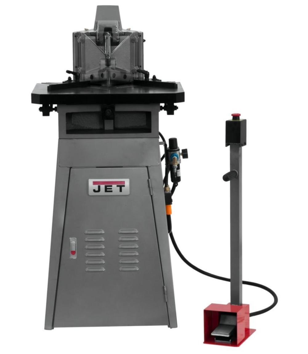 The Jet pneumatic notcher handles up to 11 gauge mild steel, cutting perfect notches with blades that are fixed at 90??. The 5 In. blades can be regularly re-sharpened to increase savings and durability. The over-sized table includes guides to improve accuracy.