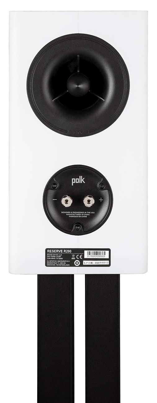 Polk Audio 300029-03-00-005 Reserve R200 White Large Bookshelf Speakers (Pair)As the larger bookshelf speaker in the series, the R200 excels in delivering extra bass power thanks to its 6.5?? turbine cone woofer and larger cabinetry. Perfect for listening in a stereo pair, as part of a front stage, or as surround components in a larger system. Features