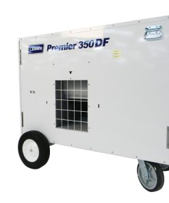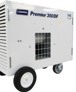 The Premier? 350 DF portable heater offers the ultimate combination of efficiency and convenience. With an enclosed flame design this direct-fired portable heater combines 99% fuel efficiency with the convenience of heat that can be ducted up to 36 feet. Generates less than 72 dB of sound so you can comfortably have a conversation while operating. Operate your dual fuel heater from propane gas or natural gas. A lockable fuel selector value allows for safe switching between fuel sources ?C no conversion kit required. It produces 350,000 BTU per hour with 2,500 CFM of heated air output. Easily start from a reliable electronic ignition and manage temperature with remote thermostat. Manufactured in Wisconsin from durable components to provide years of dependable performance. Remote thermostat, regulator, and 15 ft hose included. Air distribution accessories sold separately. Buy this certified portable heater with confidence ?C L.B. White backs your purchase with a 2-year warranty and free lifetime of technical support.