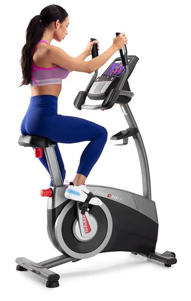 Pro-Form PFEX17820 Pro C10U Upright Exercise BikeWe??ve learned that the best fitness experience is all about the details. With the Pro C10U, you aren??t just working out, you??re enjoying a comfortable ride. Our oversized seat has added cushioning and easily adjusts, both horizontally and vertically, to give you the perfect fit. You??ll also be able to swipe through and watch all your progress on the built-in 10?? Smart HD touchscreen display. Made with a commercial-gauge, welded steel frame, this exercise bike is built to last. With an additional enhancement of corrosion resistance, your training will last for years to come. Features