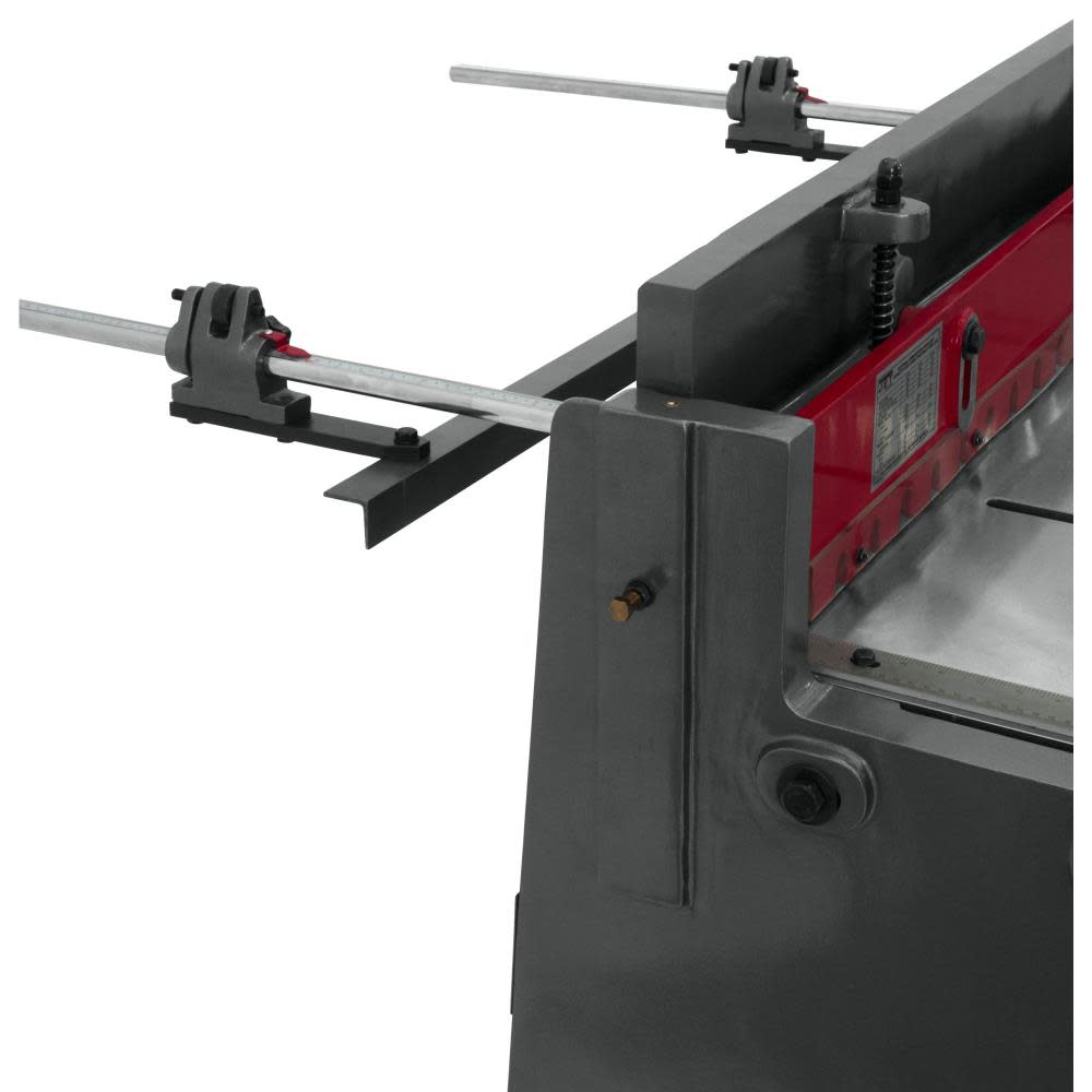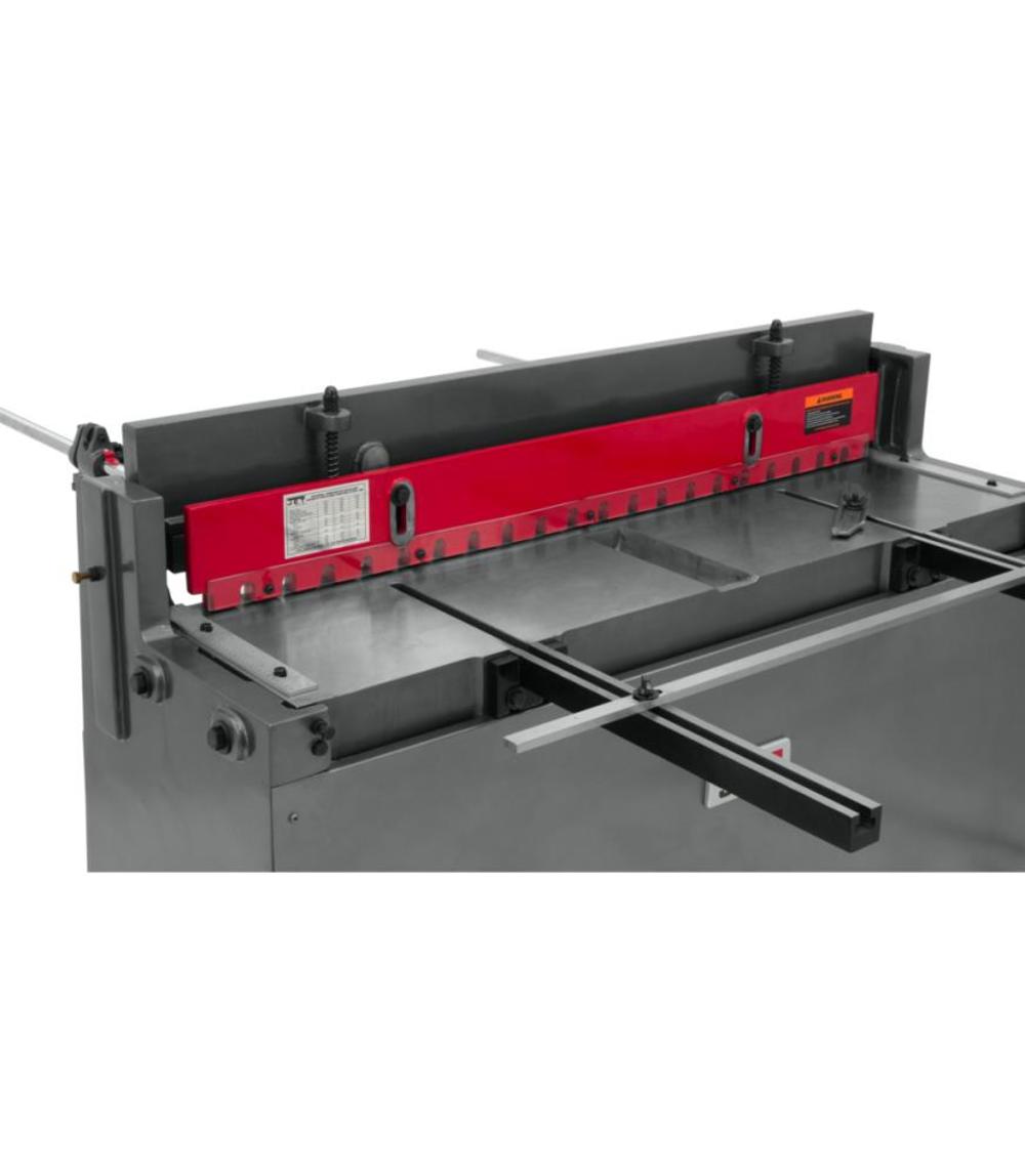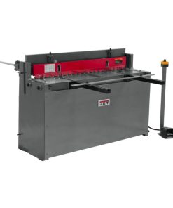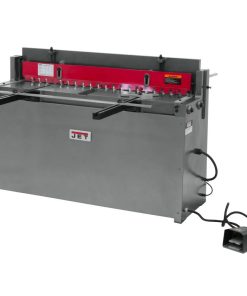 The PS-1652T, 52-Inch x 16 Gauge Pneumatic Shear from JET? cuts through various metals and plastic effortlessly. This Jet shear consumes 25.3 cubic feet of air per minute, and can make up to 44 strokes in that time. The equipment powers through mild steel up to 16-gauge thickness. Its cutting power increases to 14- or 12-gauge for softer metals, such as aluminum- or copper-based alloys. The Jet pneumatic shear has a strong cast iron frame that holds up to regular use and helps to reduce deflection for more precise results. Its beam and bed are aligned to give you precision results. A low cutting angle helps to prevent the material from twisting. At just 24 by 60 inches, it’s compact enough to fit into most workshops. You can adjust the bed to make the correct stroke each time.