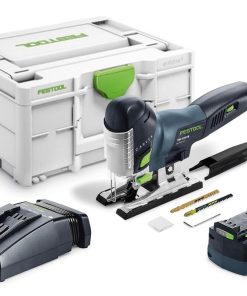 Festool Carvex Jigsaws couple brushless motors, automatic variable speed motors (auto adjust to material hardness / feed rate), and stroboscopic LED lights with Festool??s proven splinter free and guaranteed perpendicular cuts no matter the style of cut. The multi base platform features revolutionary bases like the expandable circle cutter, center bevel tilt base and multiple sub base inserts for various materials. The LEDs sync to the speed of the blade, flashing at precise rhythm essentially freezing the blade allowing you to follow the cut with ease. No corners were cut with the cordless versions. They utilize the same components, maintain the same high level of functionality while allowing the user to bring the jigsaw to some rather inconvenient places for corded jigsaws. Their 18 Volt batteries provide as much robust power as their corded counterparts without the hassle of a cord.